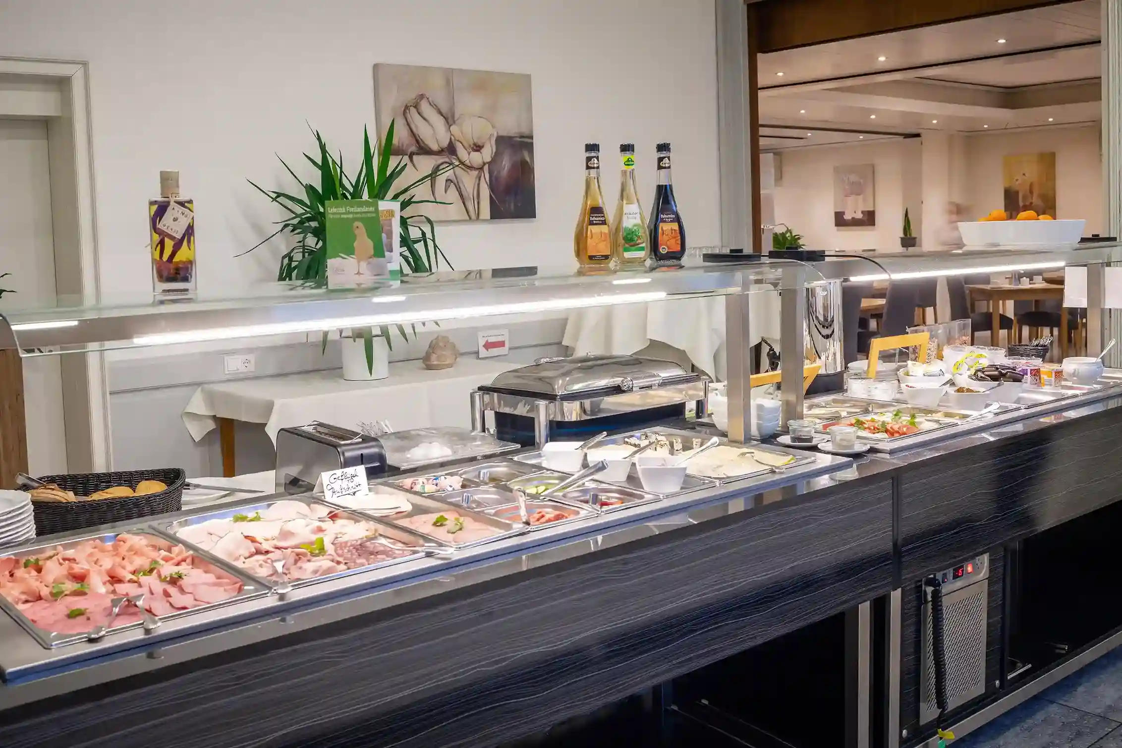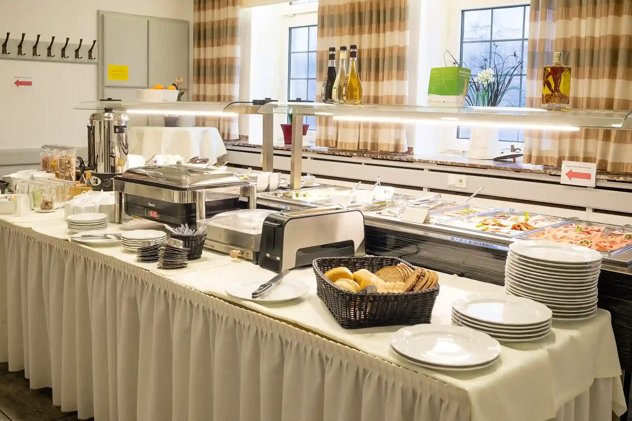 Genießen Sie Ihr Frühstück im hellen Saal oder lassen Sie den Tag auf der Terrasse ausklingen. Unser Außenbereich lädt zum Verweilen ein – mit Blick ins Grüne und gemütlicher Atmosphäre.